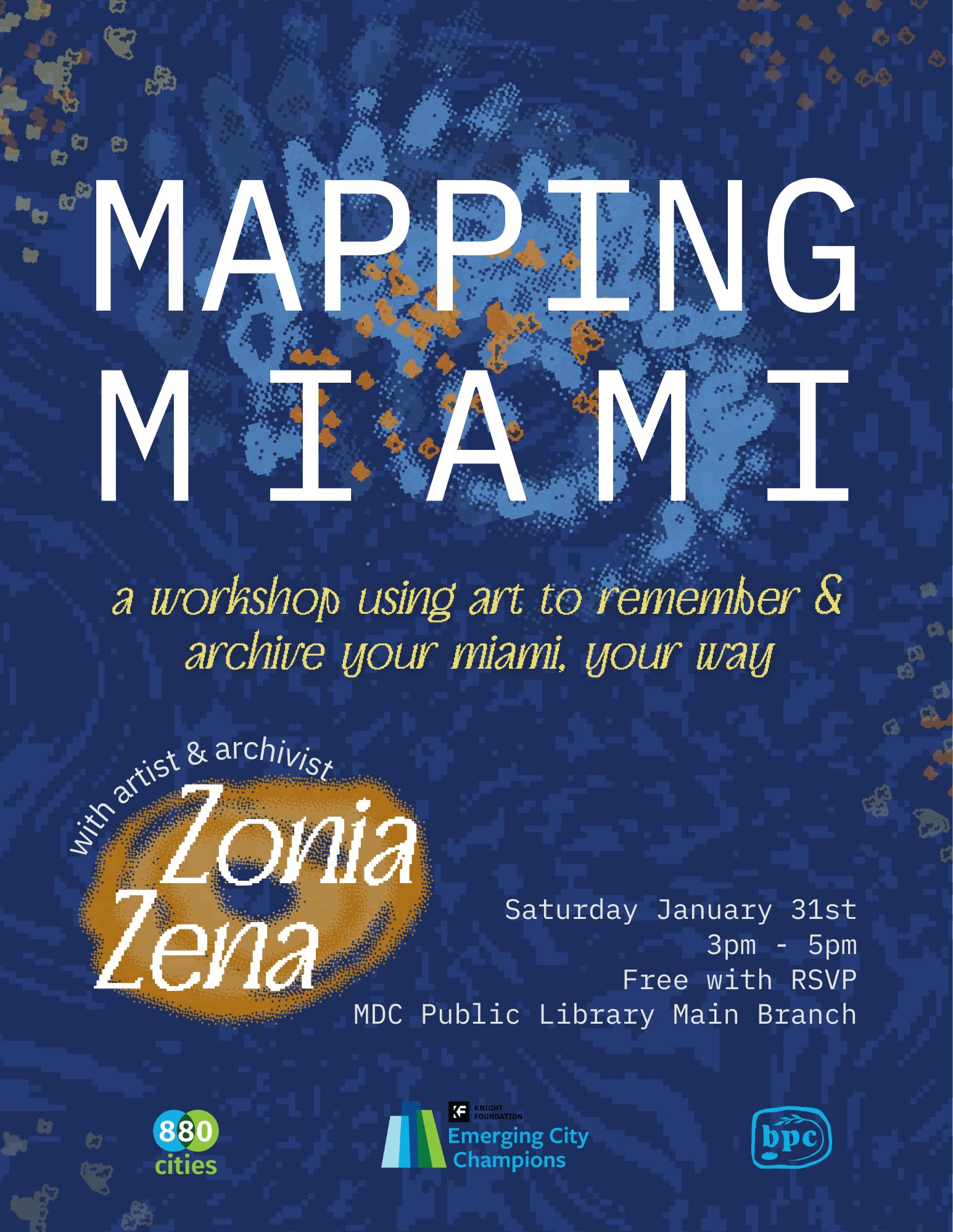 In this workshop, you will be guided through prompts to reflect on and make art about a place in Miami that means a lot to you. This art will live in a permanent digital archive that will map and preserve Miami’s collective memory in the face of fast urban change.